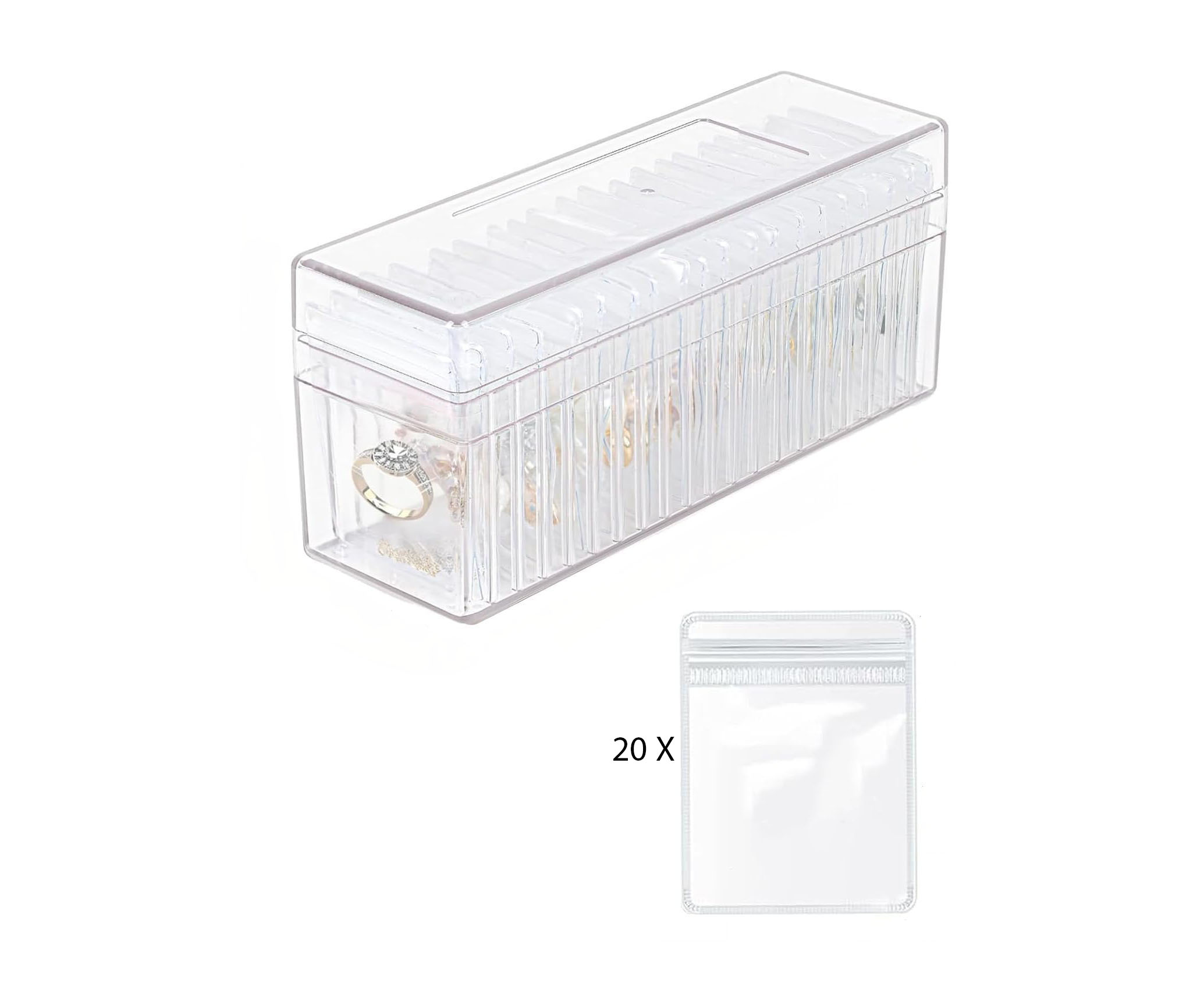 ACRYLIC JEWELRY BOX WITH 20 BAG 21*7 CM