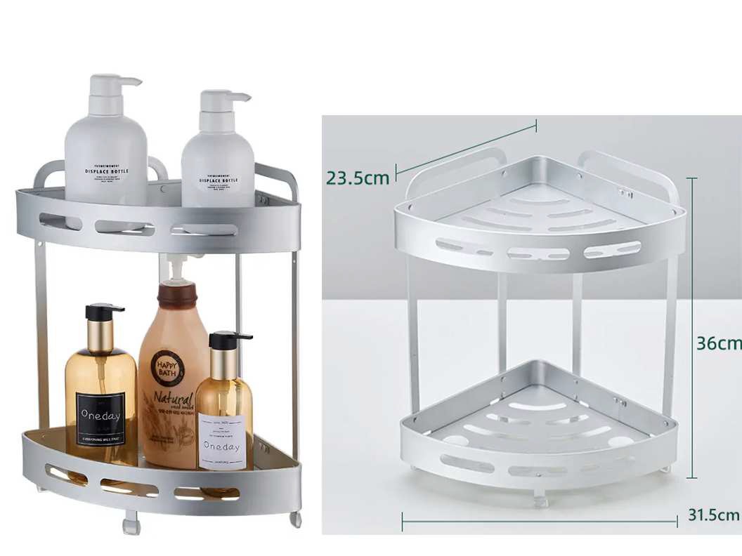Maximize your bathroom space with smart corner storage. The 2 Tiers Aluminum Corner Shower Bathroom Shelf is designed to keep your essential bathroom items neatly organized while saving valuable space. Its durable aluminum construction ensures long-lasting use while maintaining a clean and modern look. Perfect for storing shampoo, soap, sponges, and other bathroom essentials, this practical shelving unit offers both wall-mount installation and countertop standing options for flexible use in any bathroom setup.