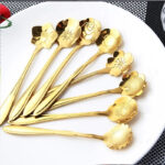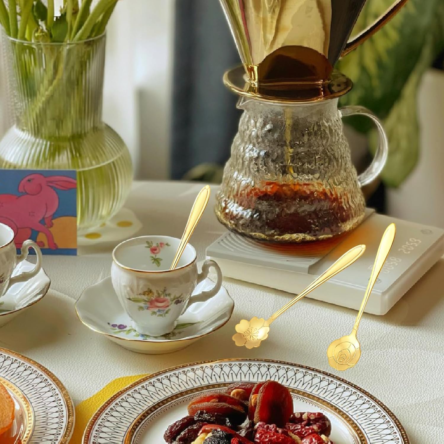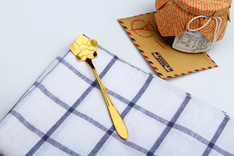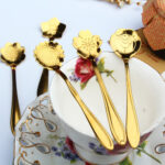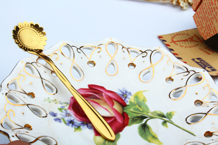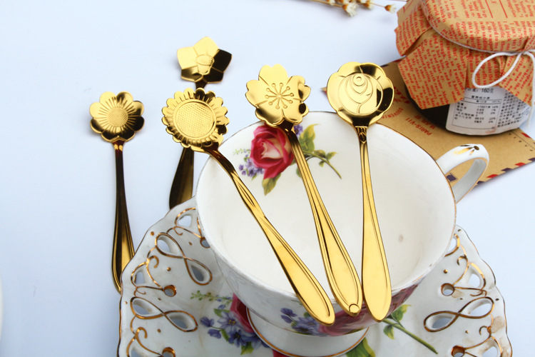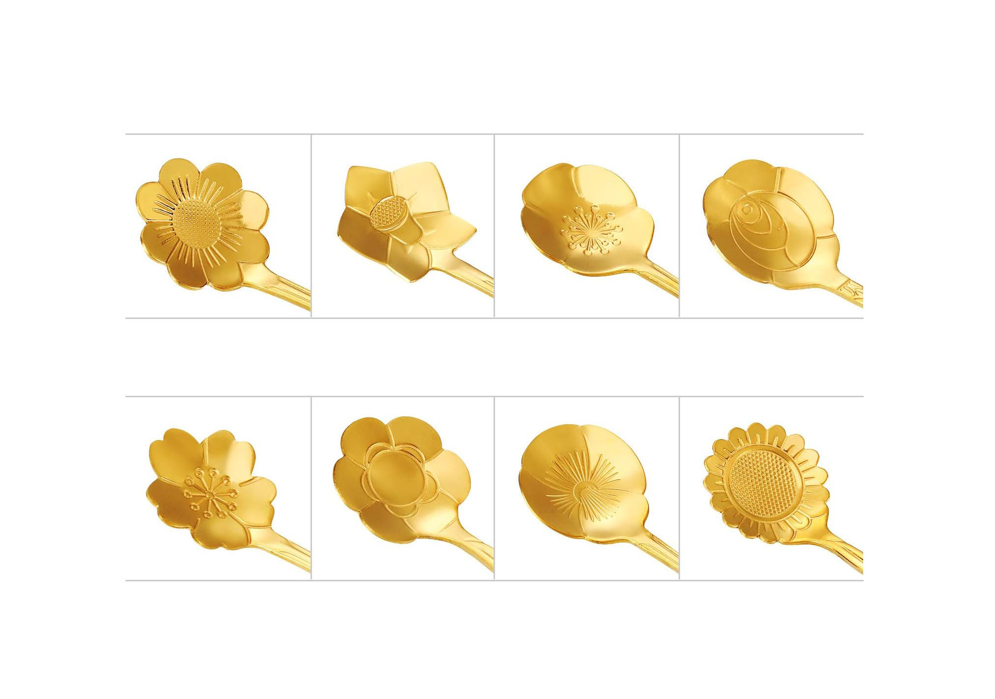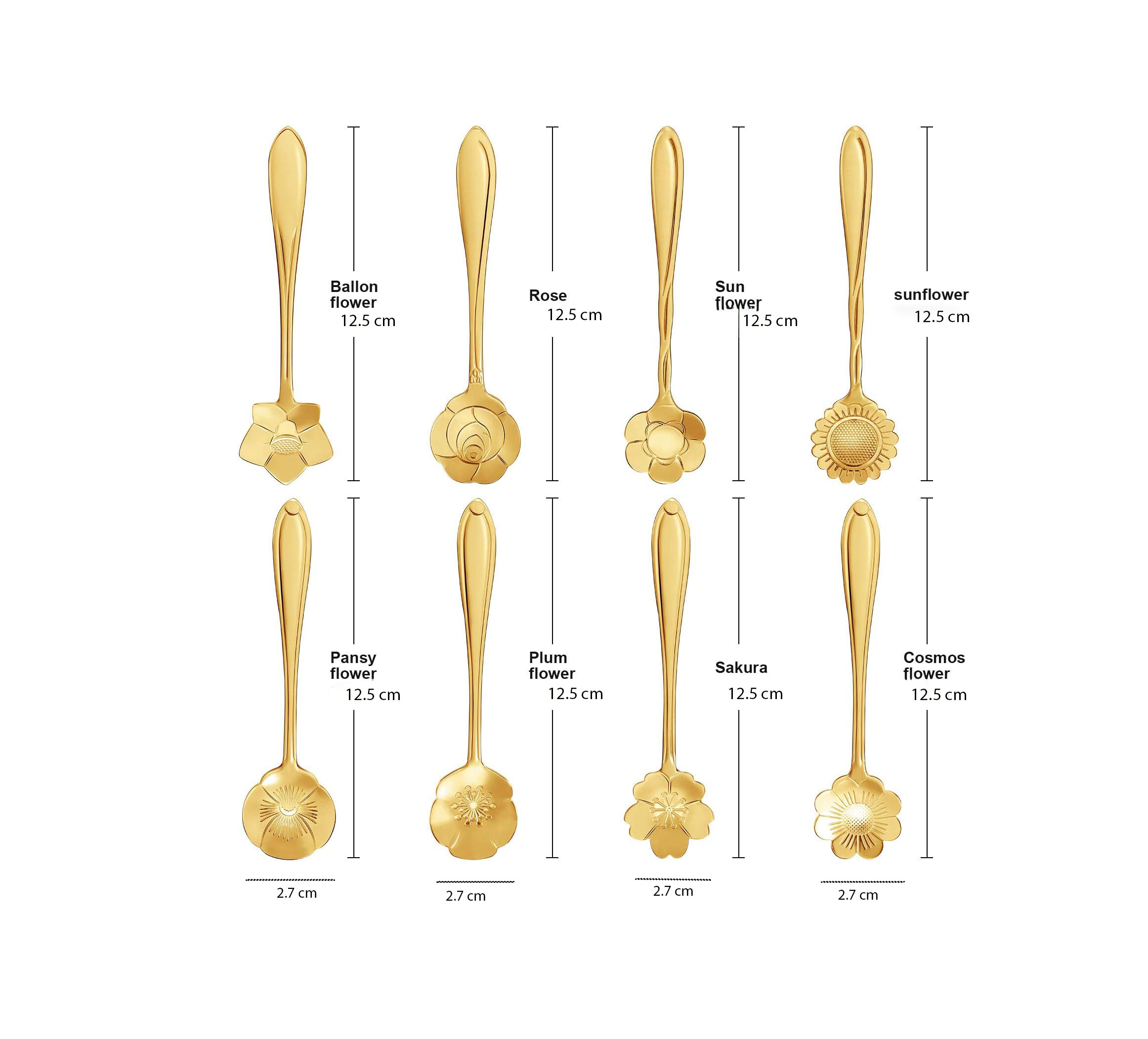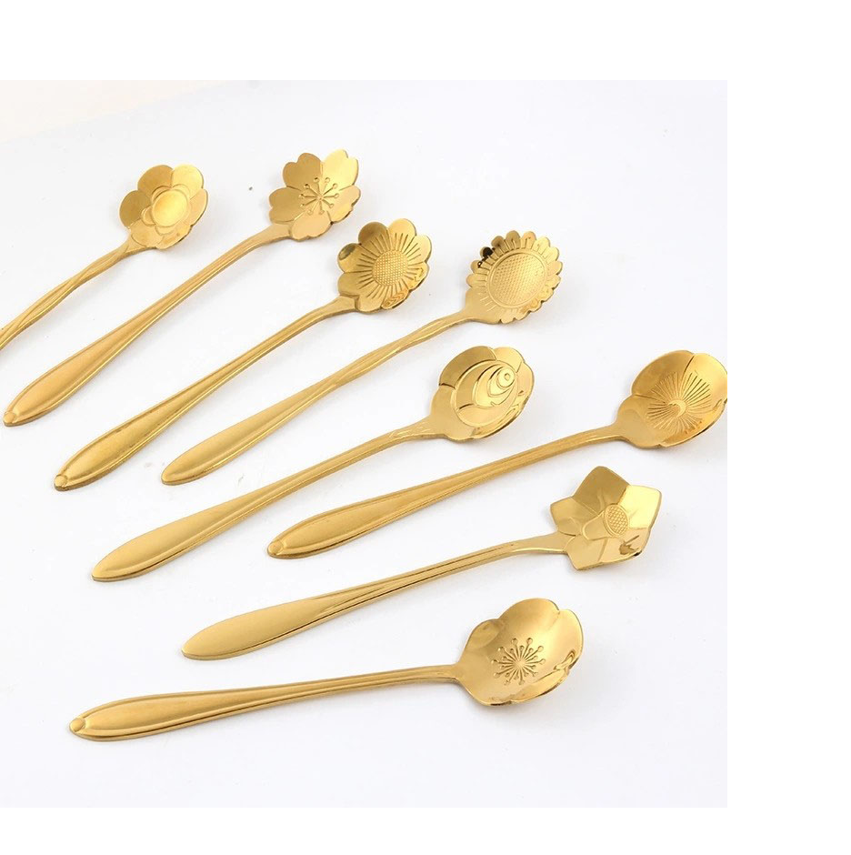 8 PIECES GOLD FLOWER SPOONS COFFEE DESSERT SUGAR ICE CREAM STIRRING TEA SPOON SET