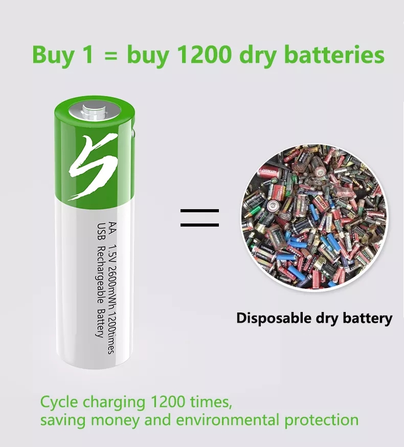 AA RECHARGEABLE BATTERY 1.5V – HIGH CAPACITY 1200 CYCLES WITH USB TYPE-C CHARGING