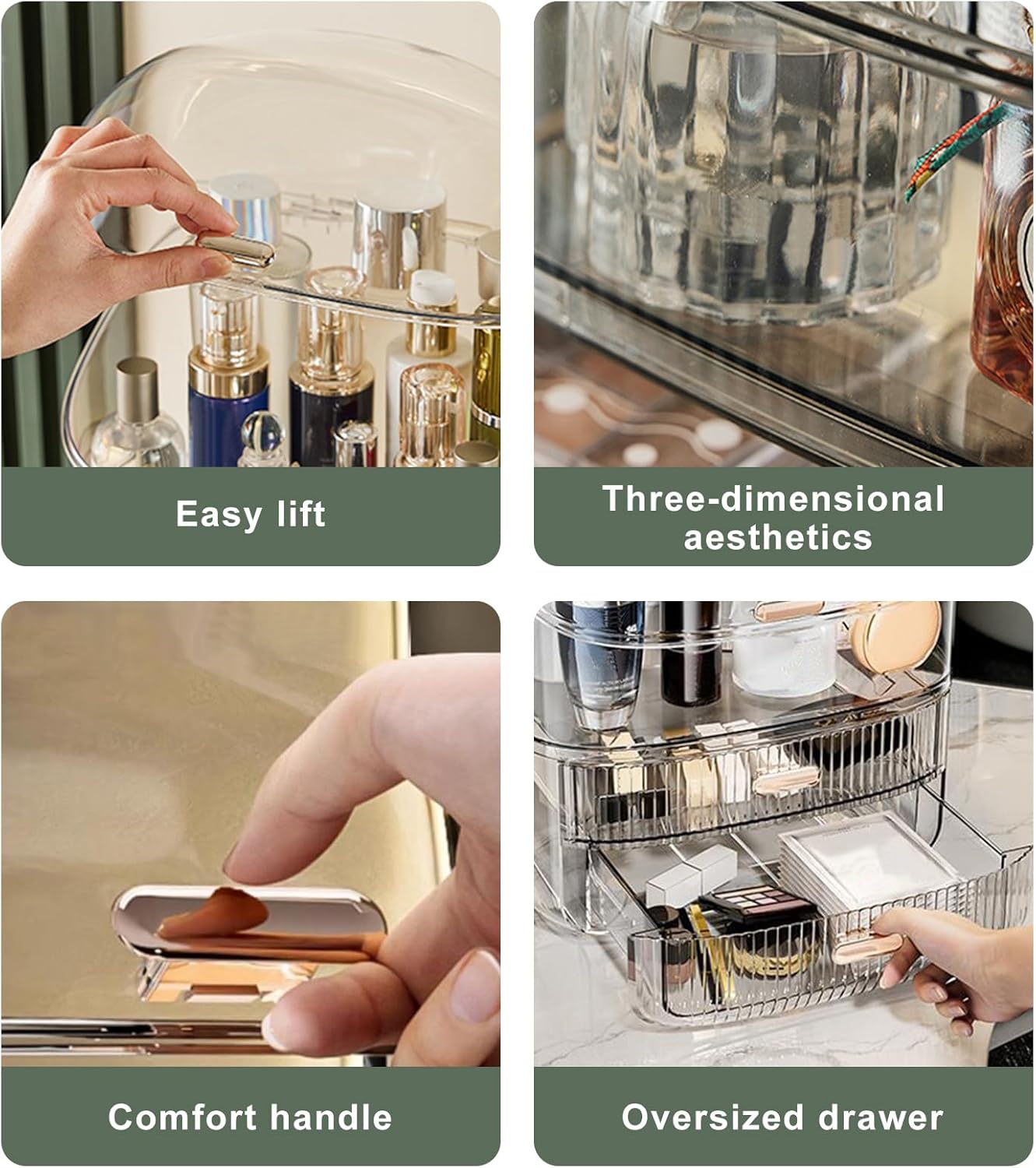 •Large Capacity Storage: Organizes makeup, skincare, brushes, and your accessories