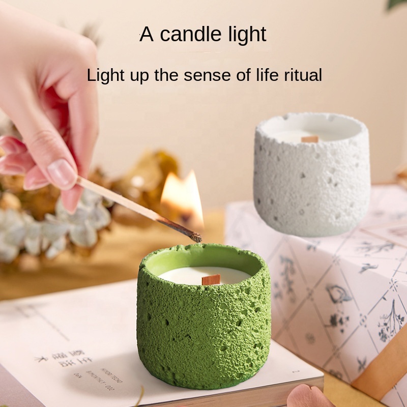 •Cement pot with wax candle for a modern decorative look