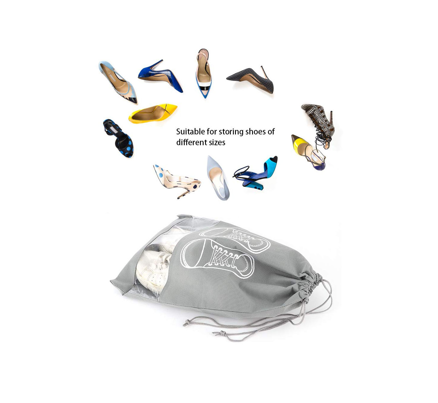SHOE BAG PORTABLE TRANSPARENT TRAVEL STORAGE BAG WITH DRAWSTRING – DUSTPROOF PVC WINDOW