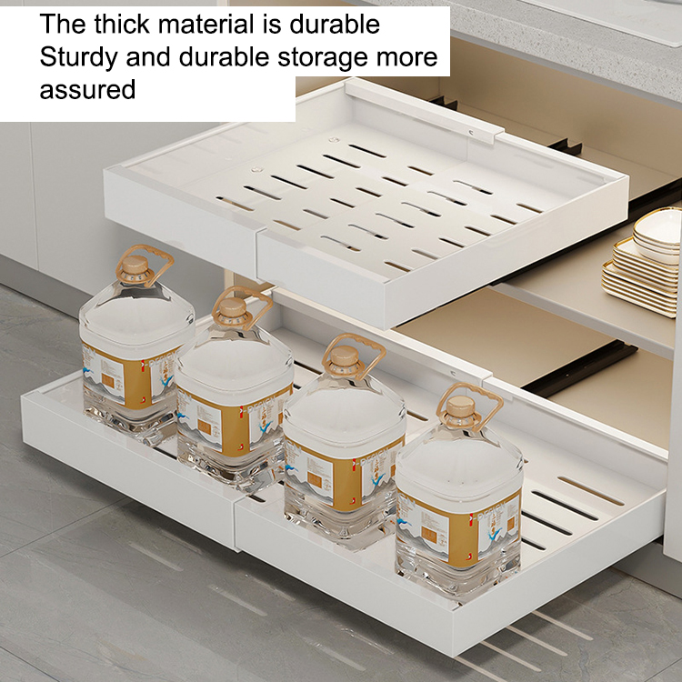 LARGE EXPANDABLE PULL OUT CABINET ORGANIZER - SLIDE RAILS ADHESIVE DRAWERS FOR KITCHEN CABINETS, POTS AND PANS ORGANIZER