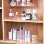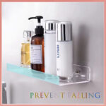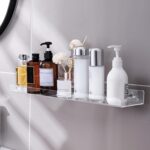 STORAGE RACK ACRYLIC SHELVES – CLEAR FLOATING SHOWER SHELF WITH HOOKS, TRANSPARENT WALL MOUNTED, NO DRILL