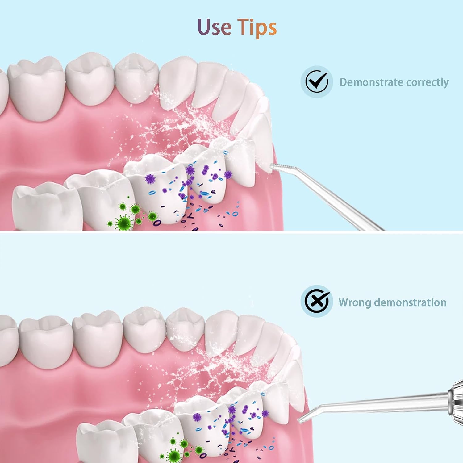 •4 Cleaning Tips Included: 1 Standard Jet Tip – 1 Tongue Cleaner – 1 Orthodontic Tip – 1 Periodontal Tip