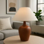 TABLE LAMP BROWN – MODERN LAMP WITH BEIGE LINEN LAMPSHADE