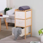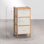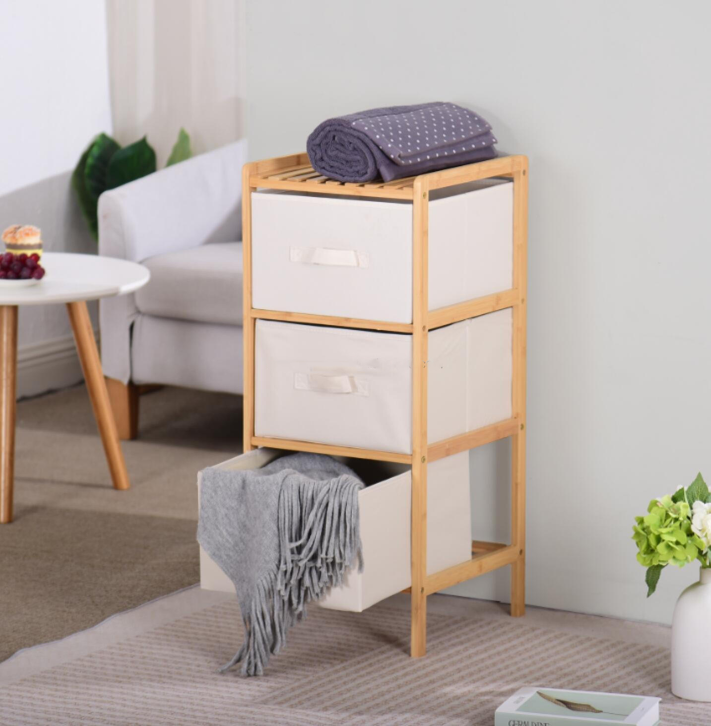 3-DRAWERS BAMBOO 3-TIER STORAGE WITH PULL-OUT FABRIC BINS – COMPACT ORGANIZER UNIT