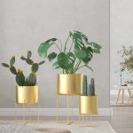 PLANT STAND SMALL INDOOR – GOLD METAL FLOOR PLANT POT DISPLAY RACK WITH METAL BASE