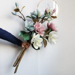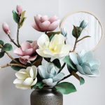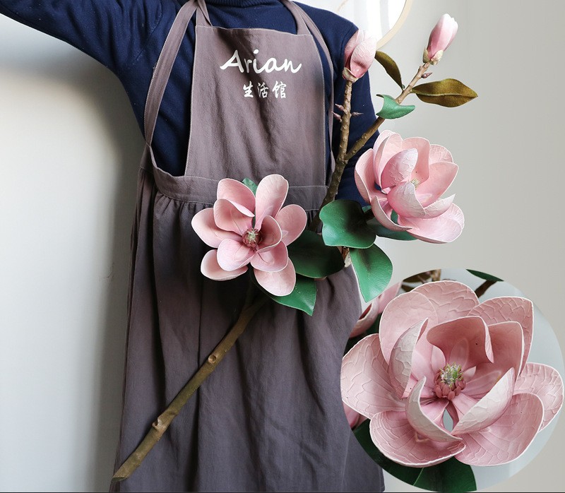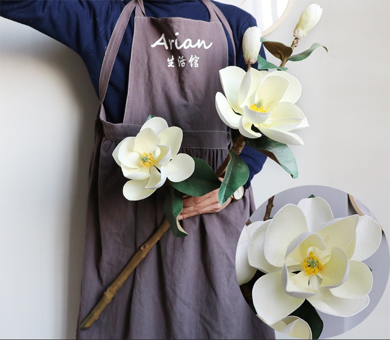 •4 magnolia blooms per stem with realistic leaves