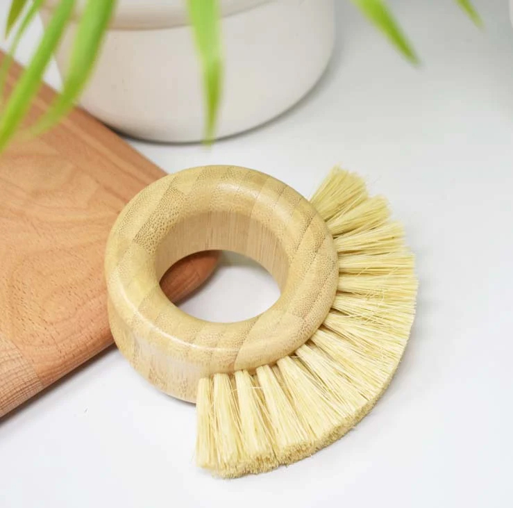 Bamboo Round Scrub Brush Kitchen Cleaning Tool