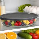 oval borosilicate glass food storage bowl with airtight plastic lid for oven, microwave, freezer and dishwasher use