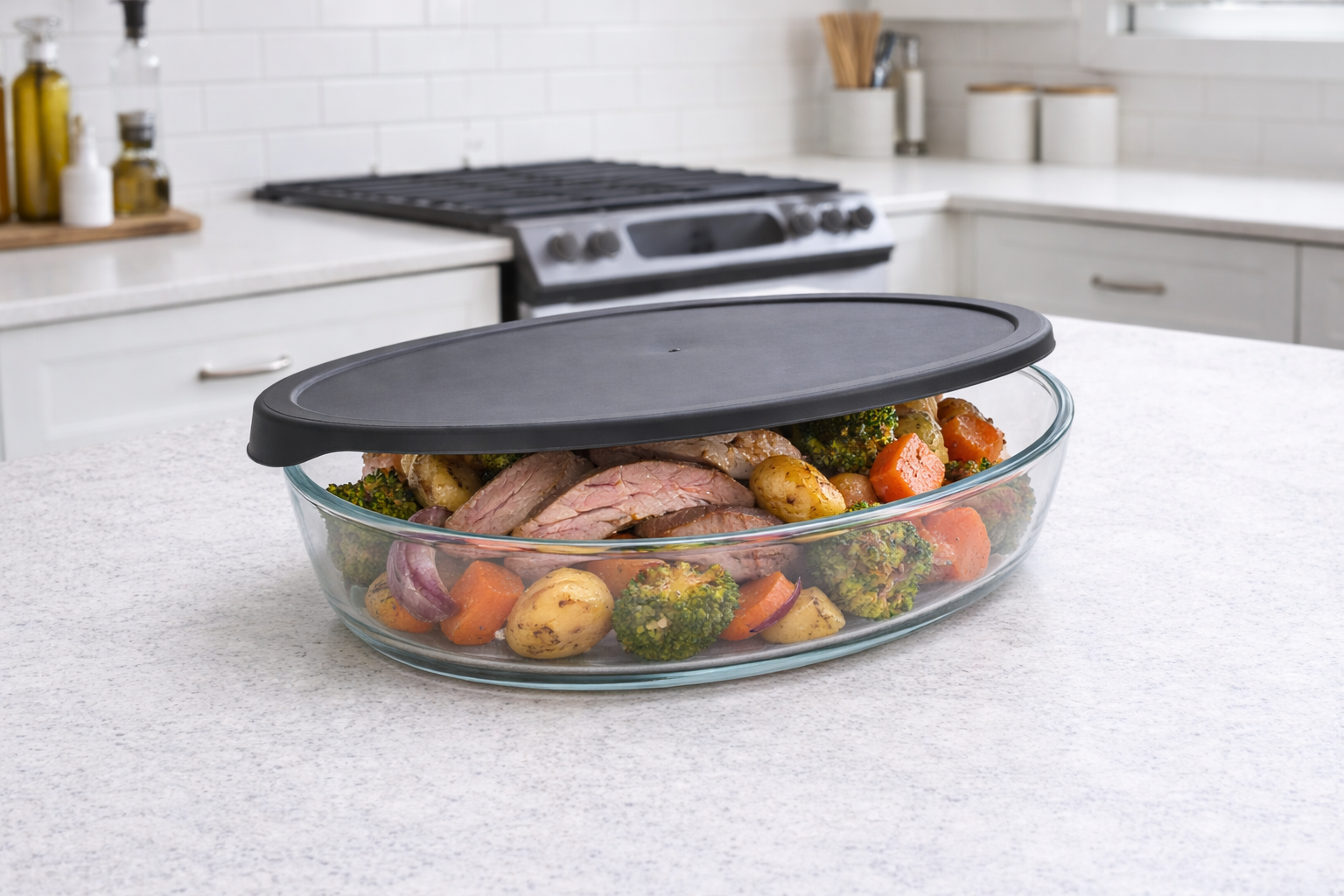 GLASS OVAL 2.4L BOWL – FOOD STORAGE WITH AIRTIGHT PLASTIC LID