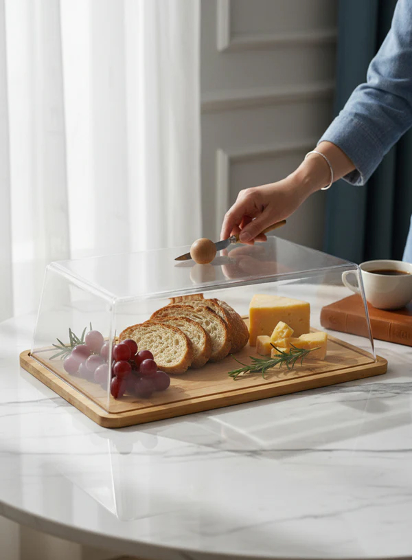 CAKE STAND 34.5 CM – RECTANGULAR BAMBOO & ACRYLIC COVER