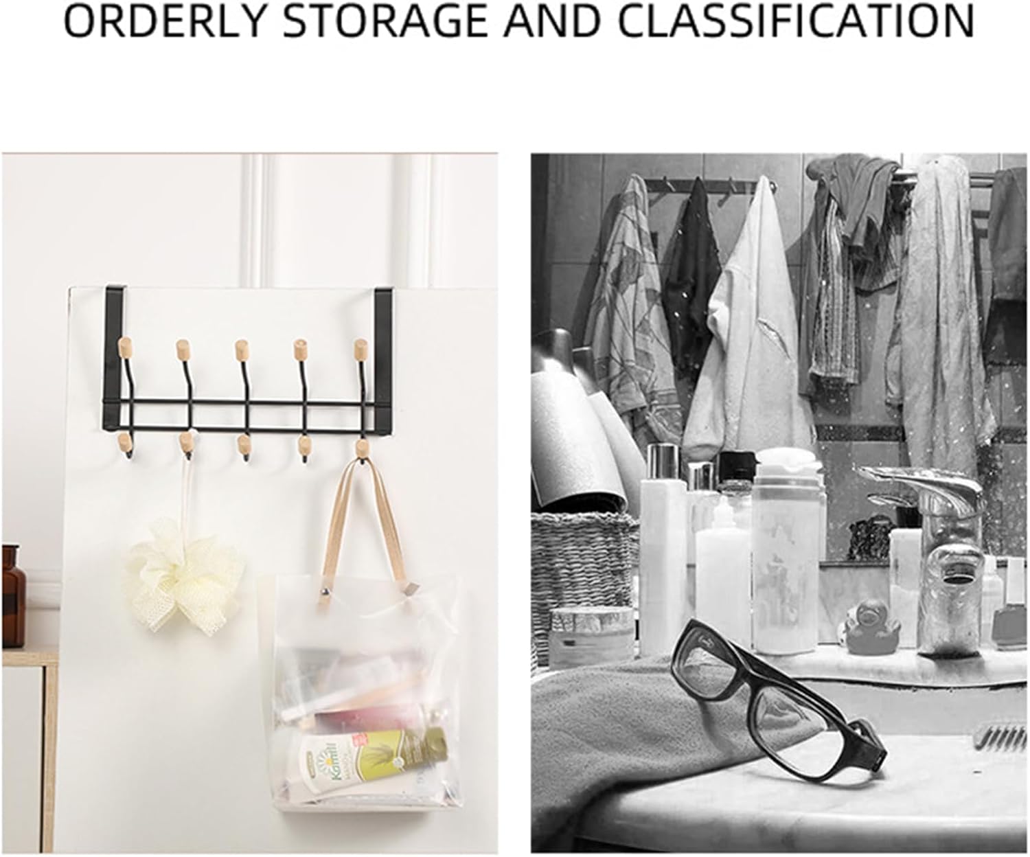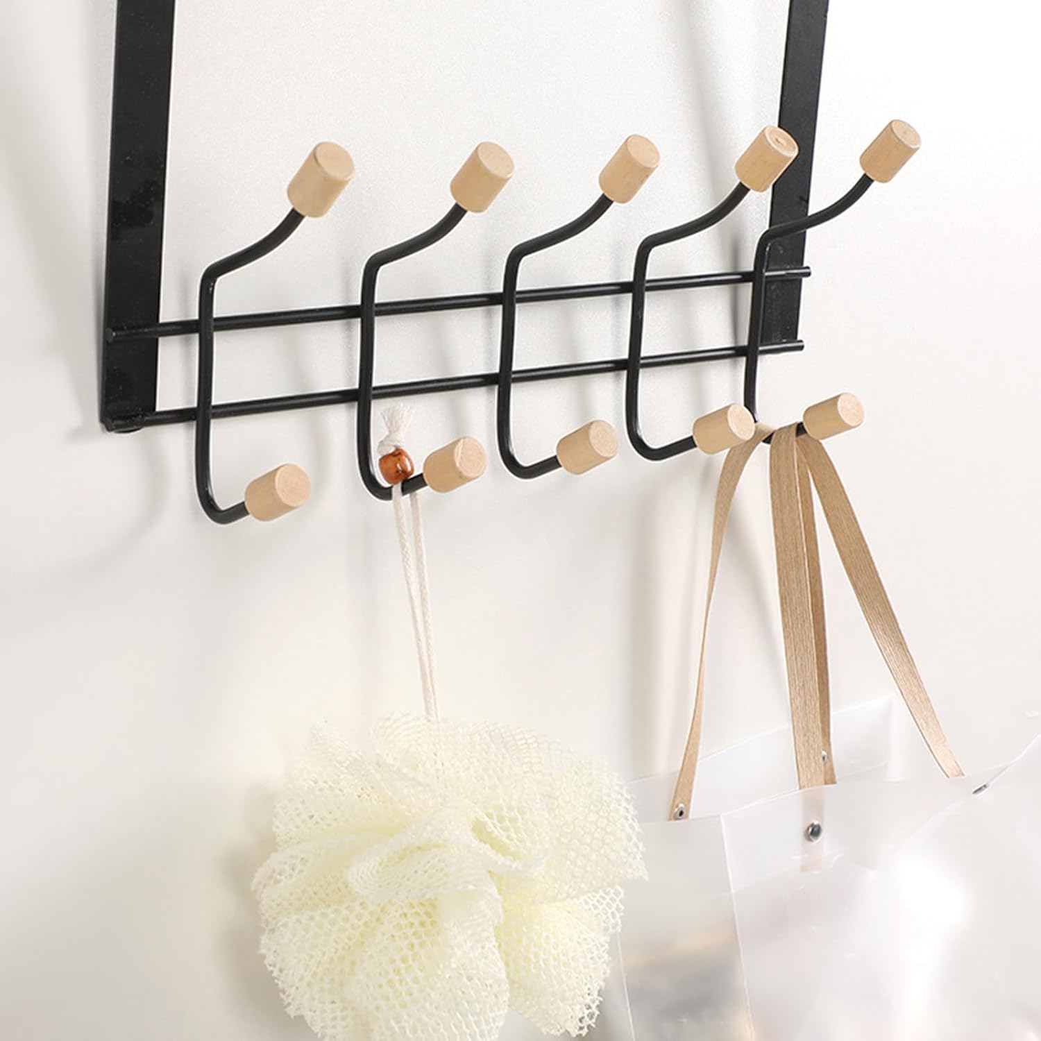 OVER THE DOOR HOOKS 2 LAYERS 10 HOOKS - DARK BROWN WOOD EDJE - METAL DOOR COAT RACK WITH 10 HOOKS