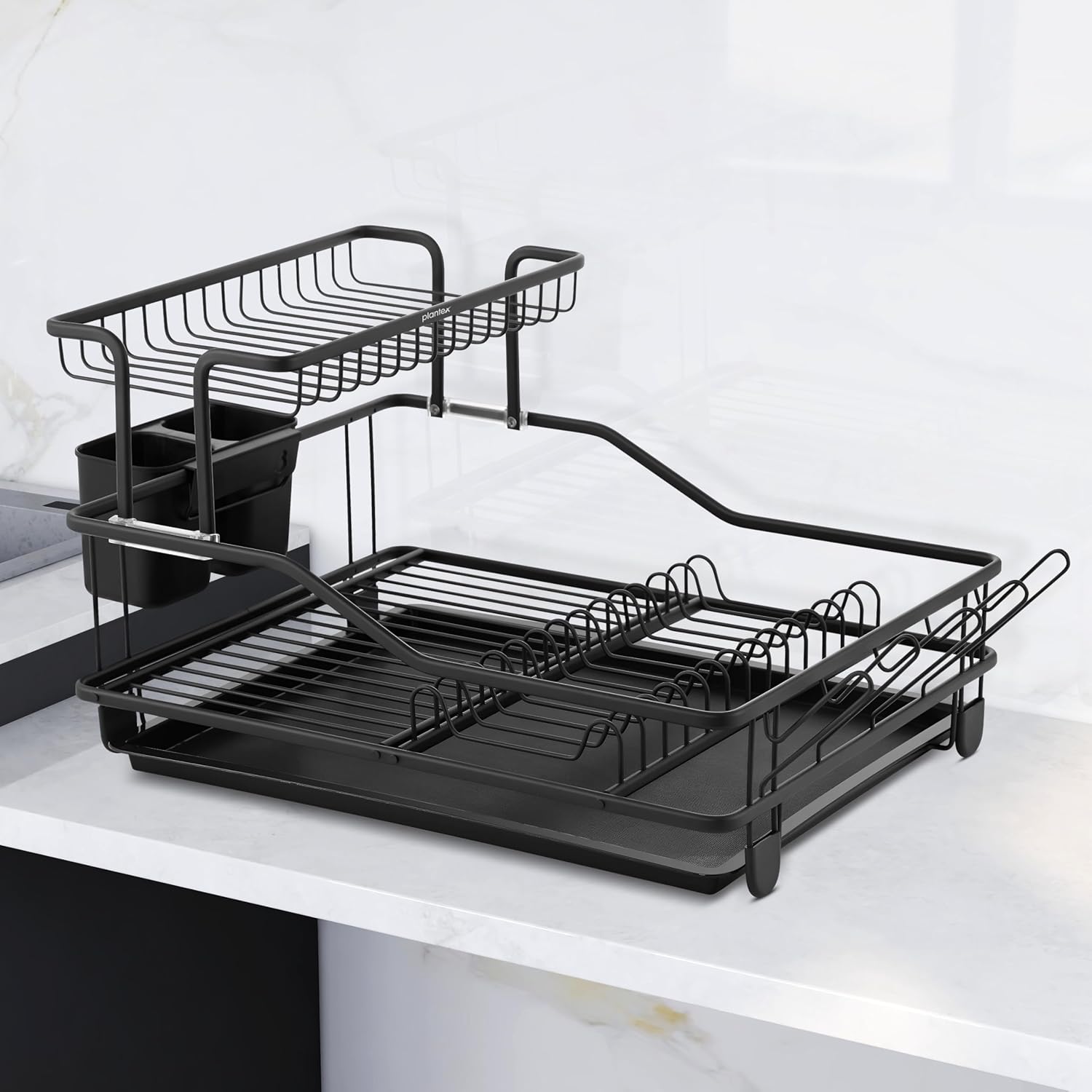 2-TIER DISH DRYING RACK WITH DRAINER TRAY & CUTLERY HOLDER – STEEL KITCHEN ORGANIZER