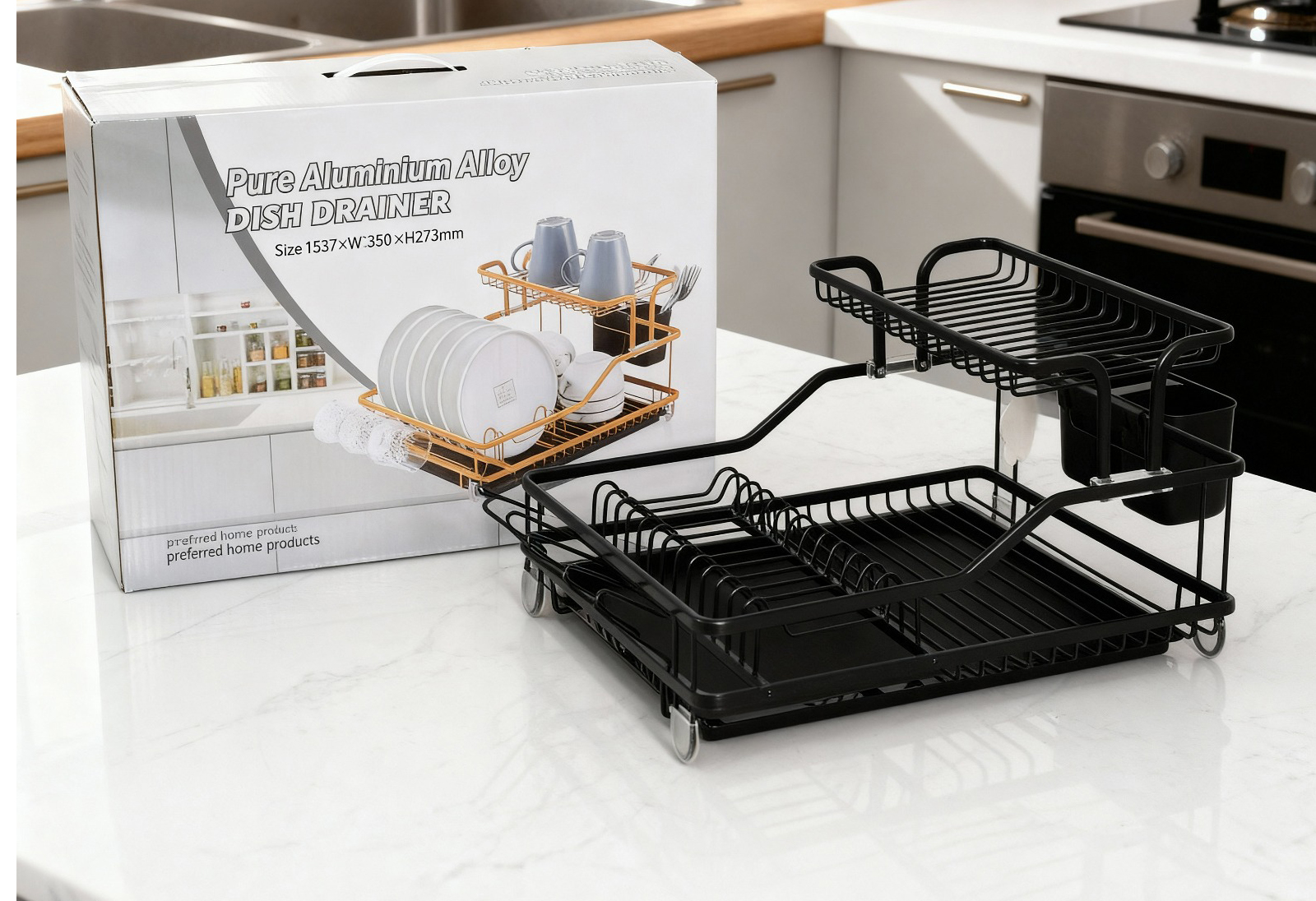 Upgrade your kitchen organization with smart, modern drying solutions! This 2-Tier Dish Drying Rack is designed to maximize counter space while keeping your dishes clean, dry, and neatly arranged. Crafted from high-quality steel with a sleek black powder-coated finish, it offers durability, rust resistance, and long-lasting performance. The spacious double-layer design allows you to dry plates, bowls, cups, cookware, and utensils all at once, while the detachable top tier gives you flexible storage options to suit your kitchen layout. Perfect for daily use, this rack adds both functionality and style to your countertop — shop now from Homedash in Lebanon.