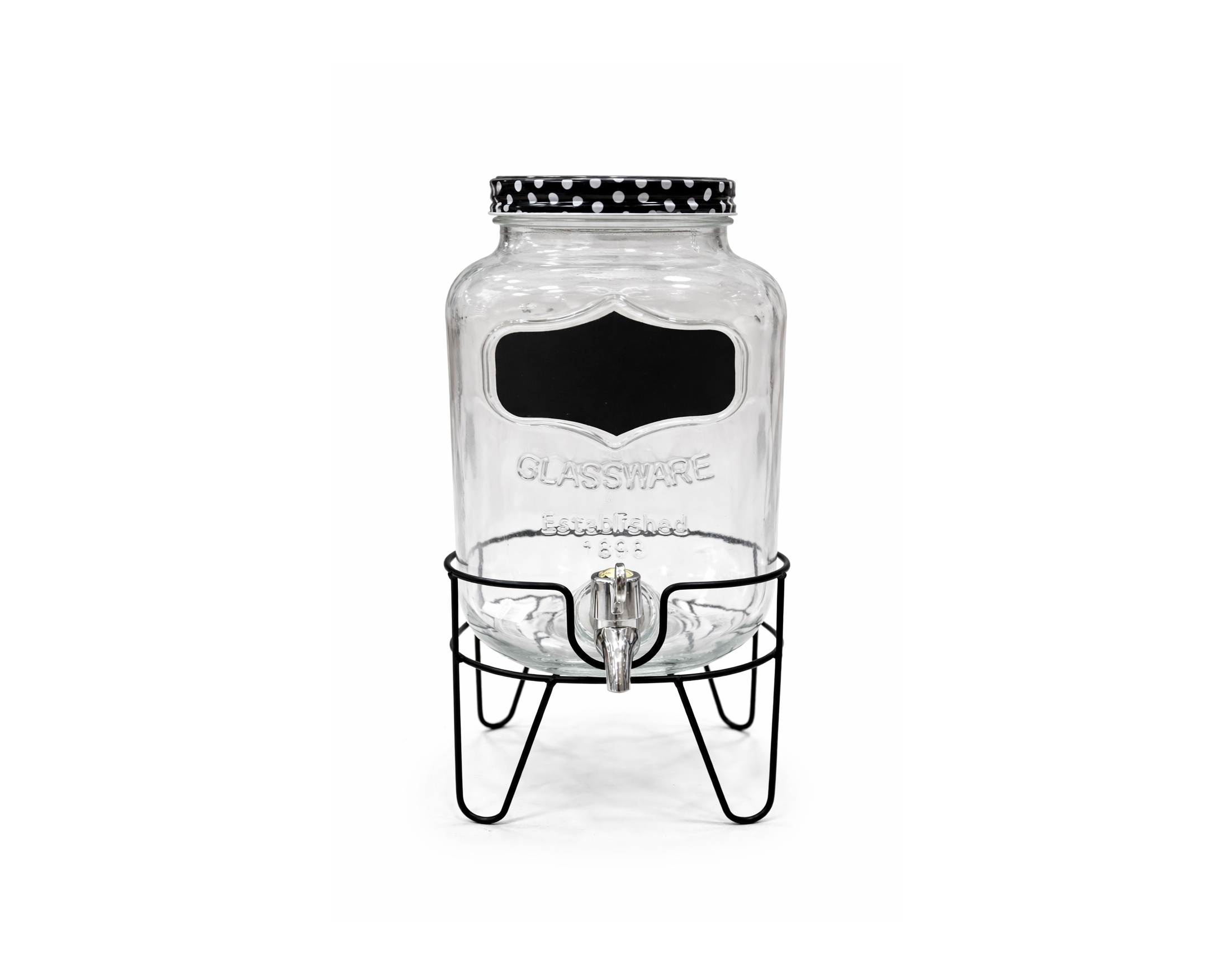 4L GLASS BEVERAGE DISPENSER WITH TAP JUG IN IRON FRAME