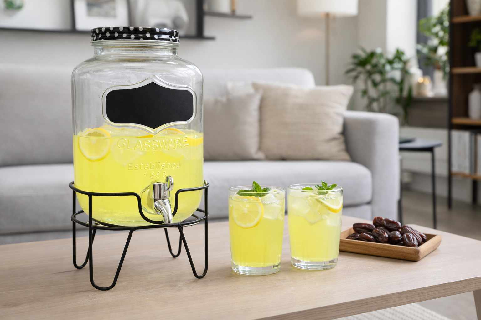 Serve in style and impress every guest. This 4L Glass Beverage Dispenser Jug with Iron Frame combines elegance, durability, and practicality in one beautiful design. Whether you’re hosting a party, wedding, buffet, or simply upgrading your kitchen setup, this dispenser turns any drink into a stylish presentation piece. Made from thick, high-quality clear glass and supported by a stable iron stand, it offers both functionality and aesthetic charm. Perfect for lemonade, iced tea, sangria, cucumber water, and more. Shop now from Homedash in Lebanon and elevate your serving experience beautifully.