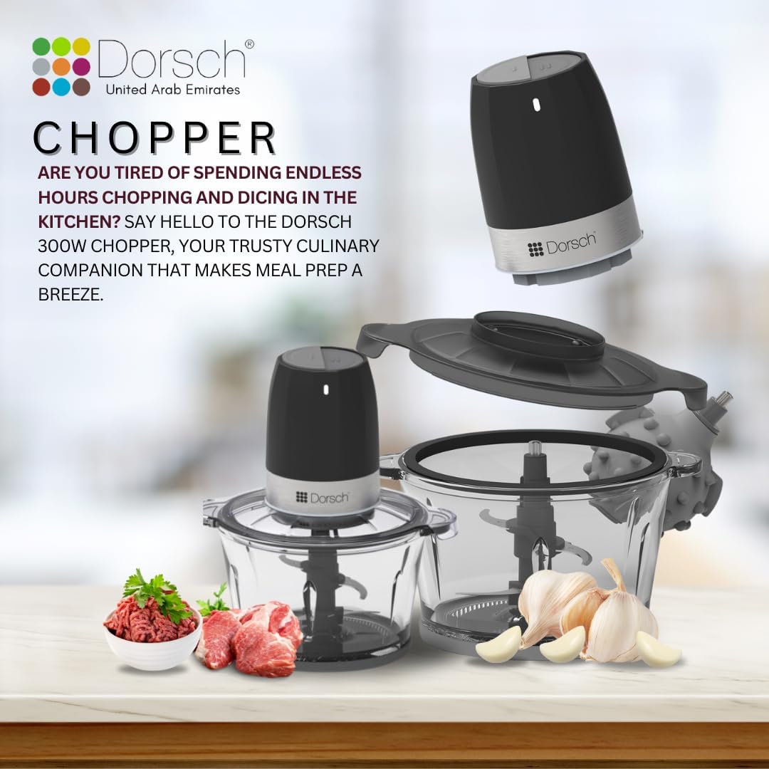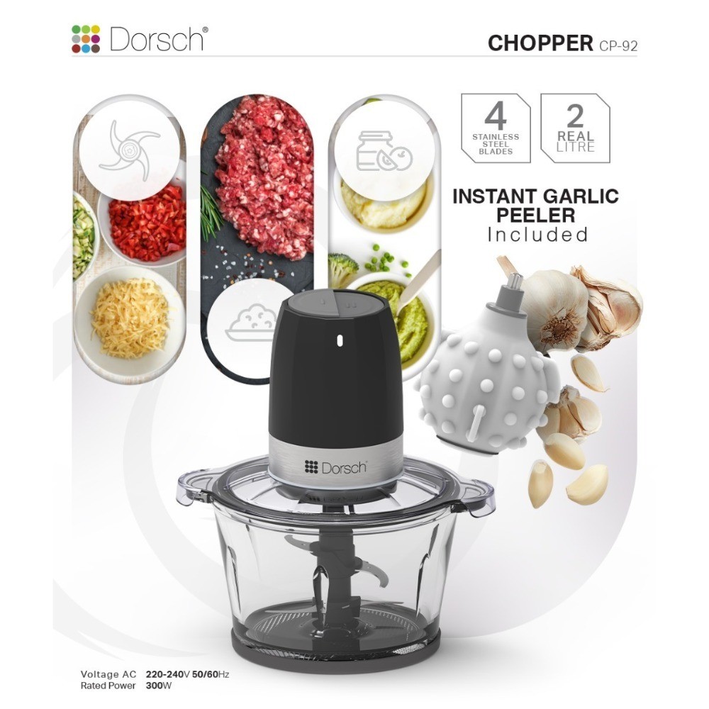 MULTI-FUNCTION CHOPPER DORSCH ELECTRIC 2L – 300W POWERFUL MOTOR WITH GARLIC PEELER