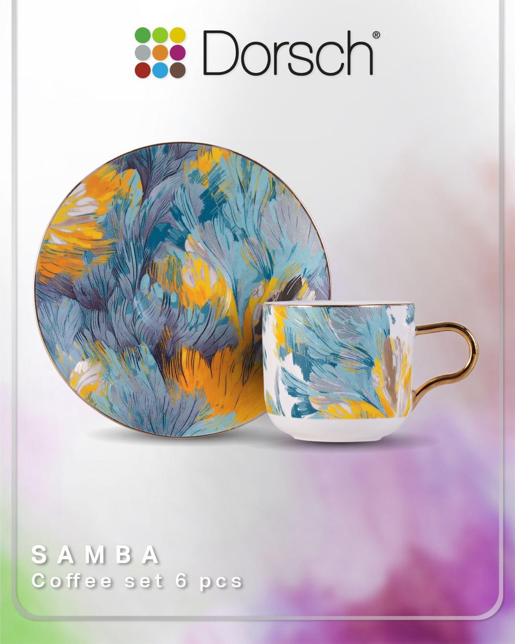 SET 6 PCS SAMBA COFFEE CUPS – DORSCH DH-09311 PORCELAIN COFFEE CUPS WITH SAUCERS
