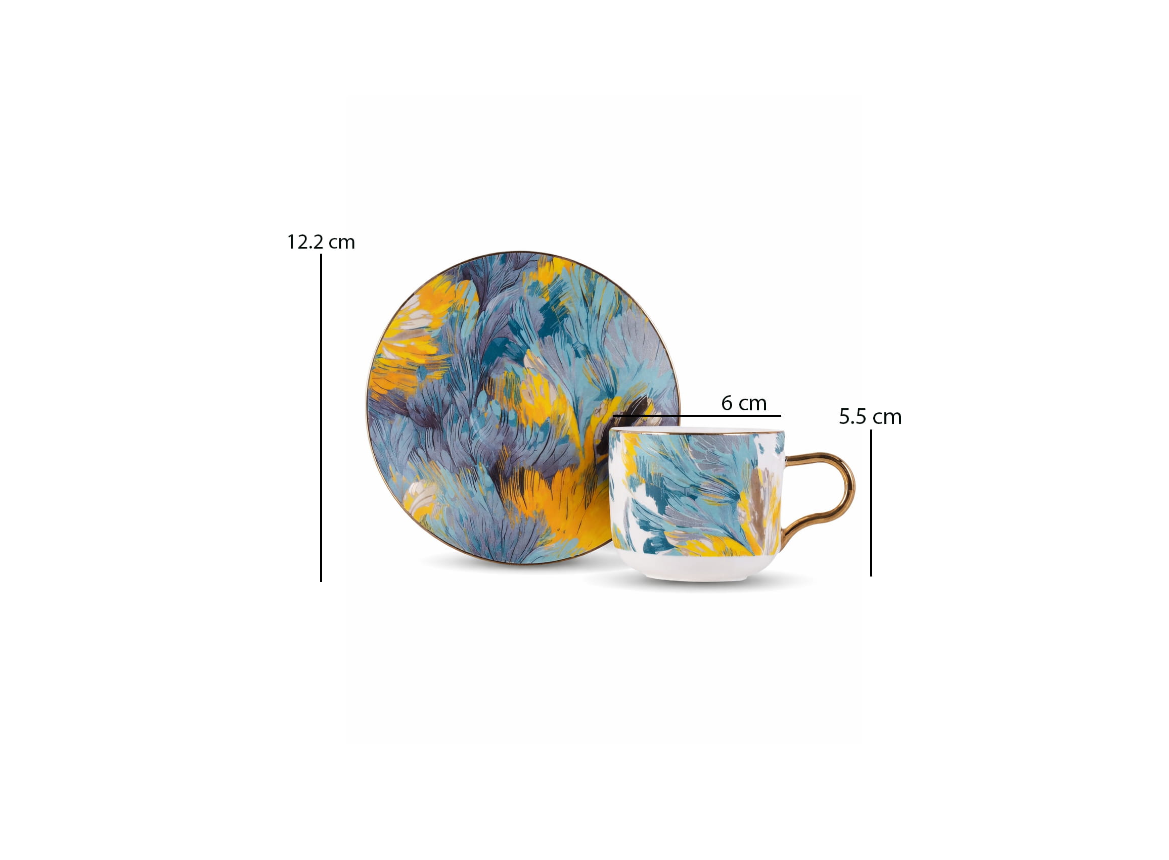 •Size: Cup H 5.5 – D 6 cm / Plate D 12.2 cm