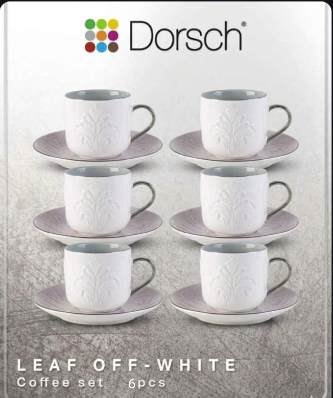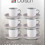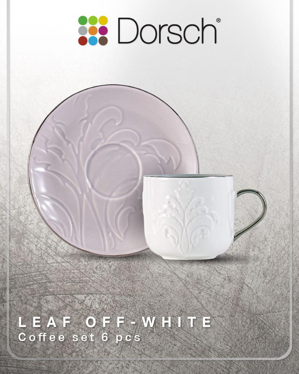 LEAF OFF-WHITE SET 6 PCS COFFEE CUPS – DORSCH DH-09321 PORCELAIN COFFEE CUPS WITH SAUCERS