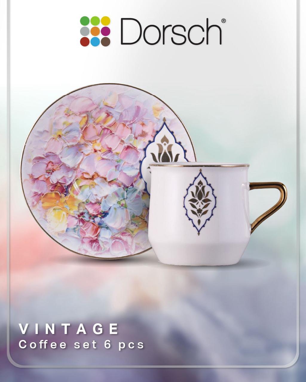 COFFEE CUP VINTAGE SET 6 PCS – DORSCH DH-09314 PORCELAIN COFFEE CUPS WITH SAUCERS