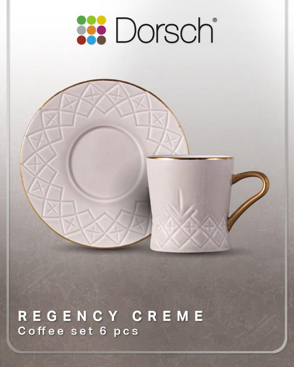 Dorsch Regency Creme Coffee Cup Set 6 Pcs DH-09334 Porcelain Cups With Saucers