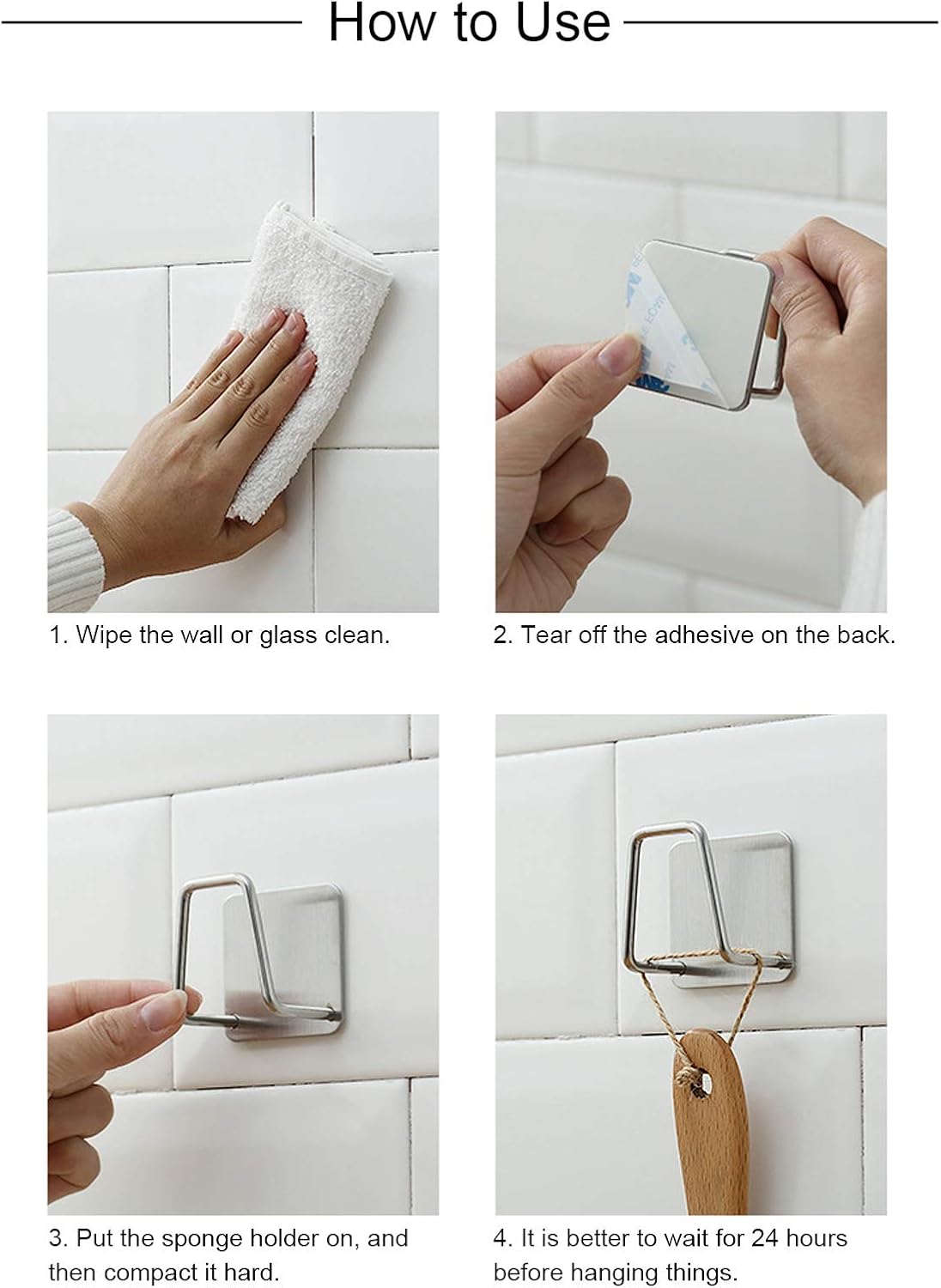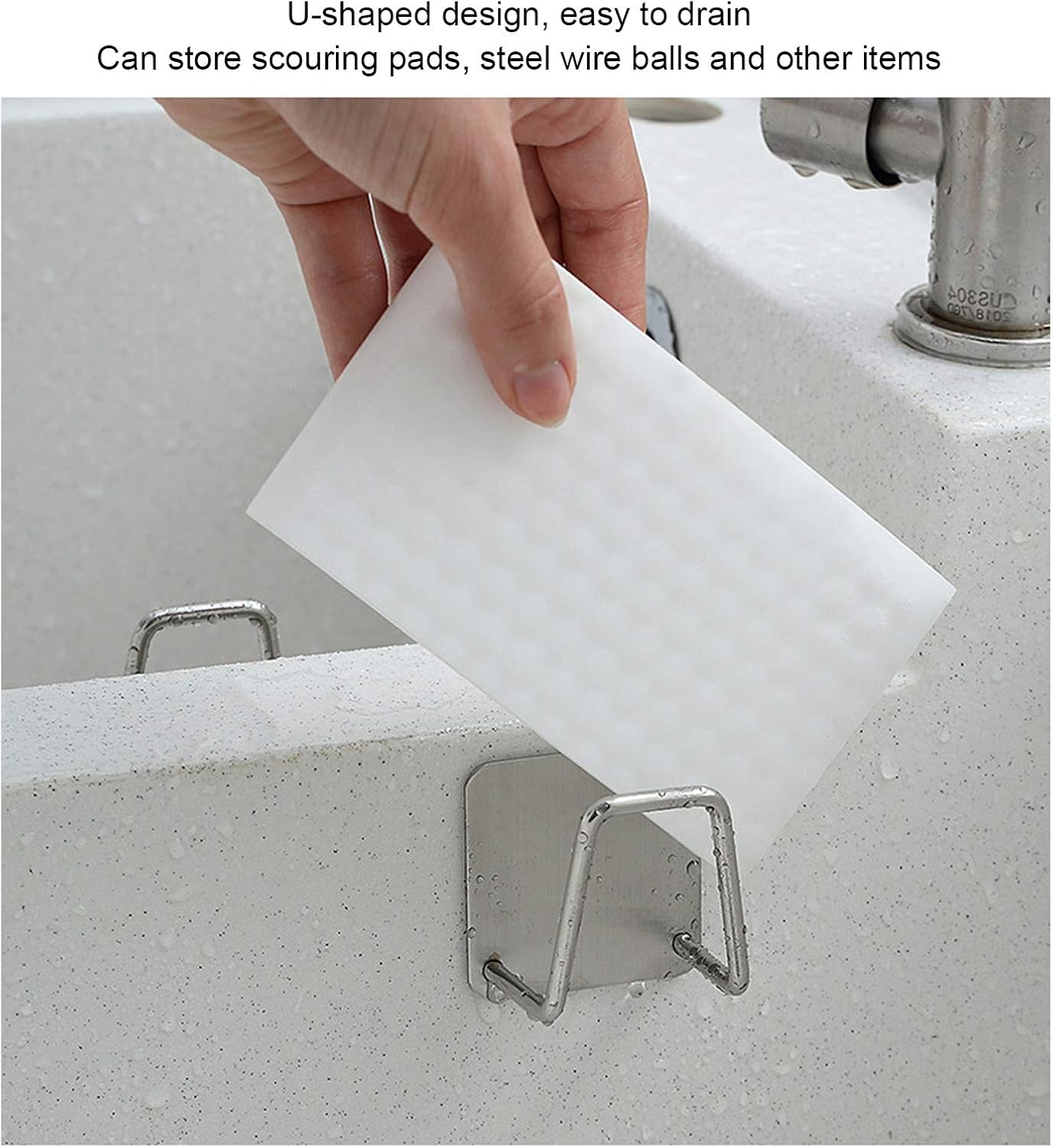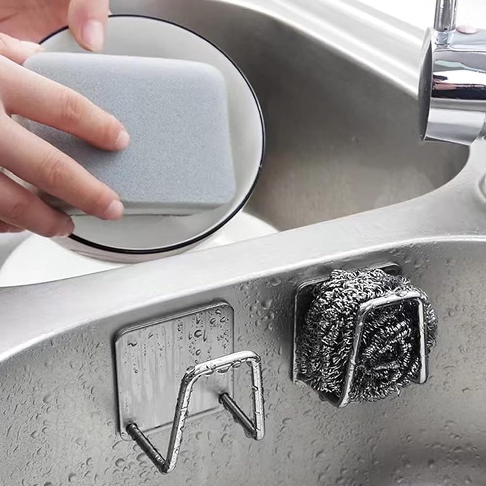 SPONGE HOLDER FOR KITCHEN SINK – STAINLESS STEEL HANGER ADHESIVE SINK CADDY
