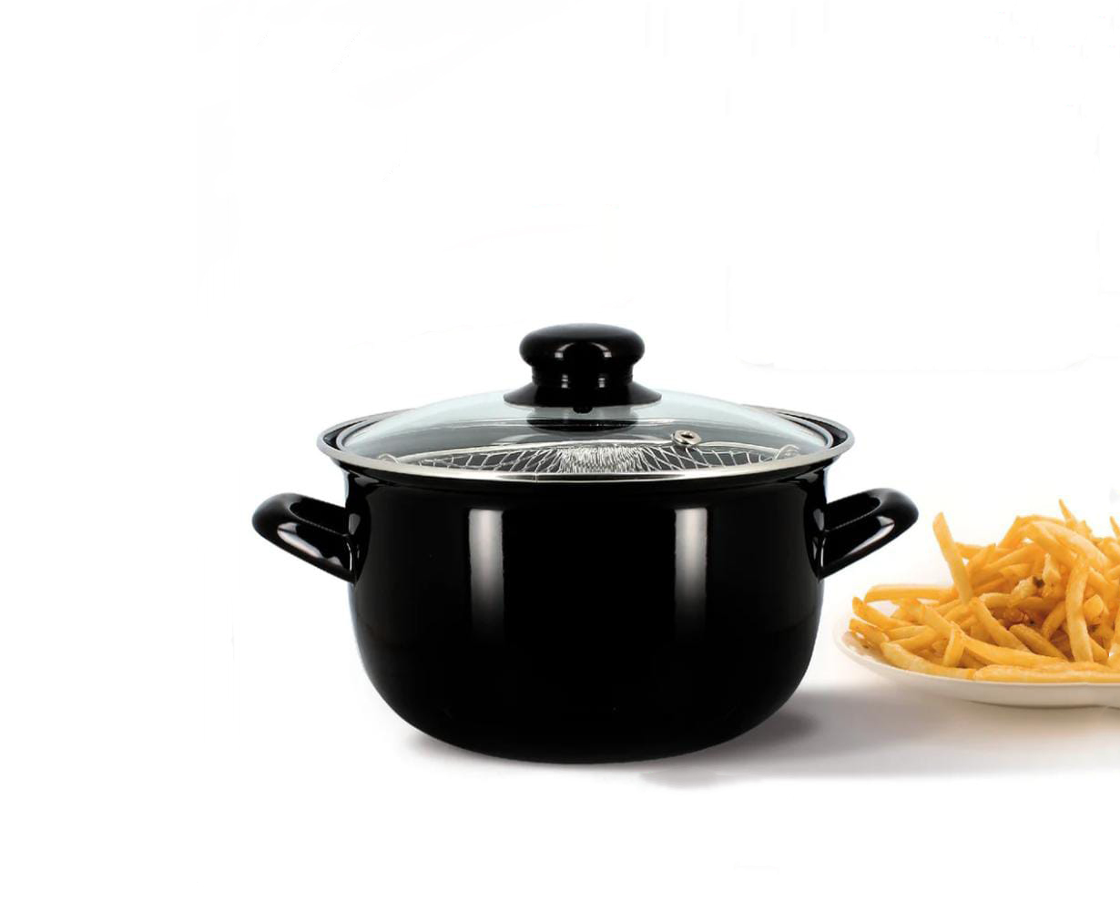 DEEP FRYER 26CM ENAMEL COATED POT WITH GLASS LID & FRYING BASKET – INDUCTION READY