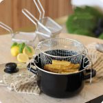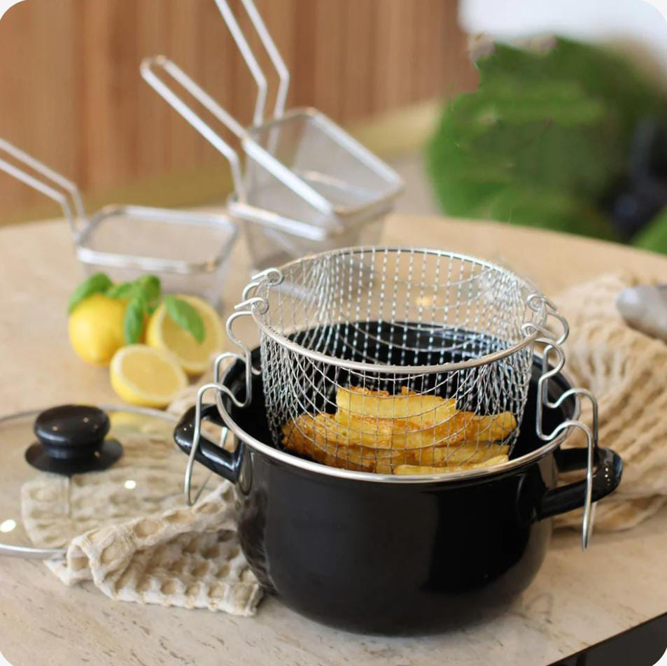 •Strainer Frying Basket Included: Easy draining of fried foods and oil separation