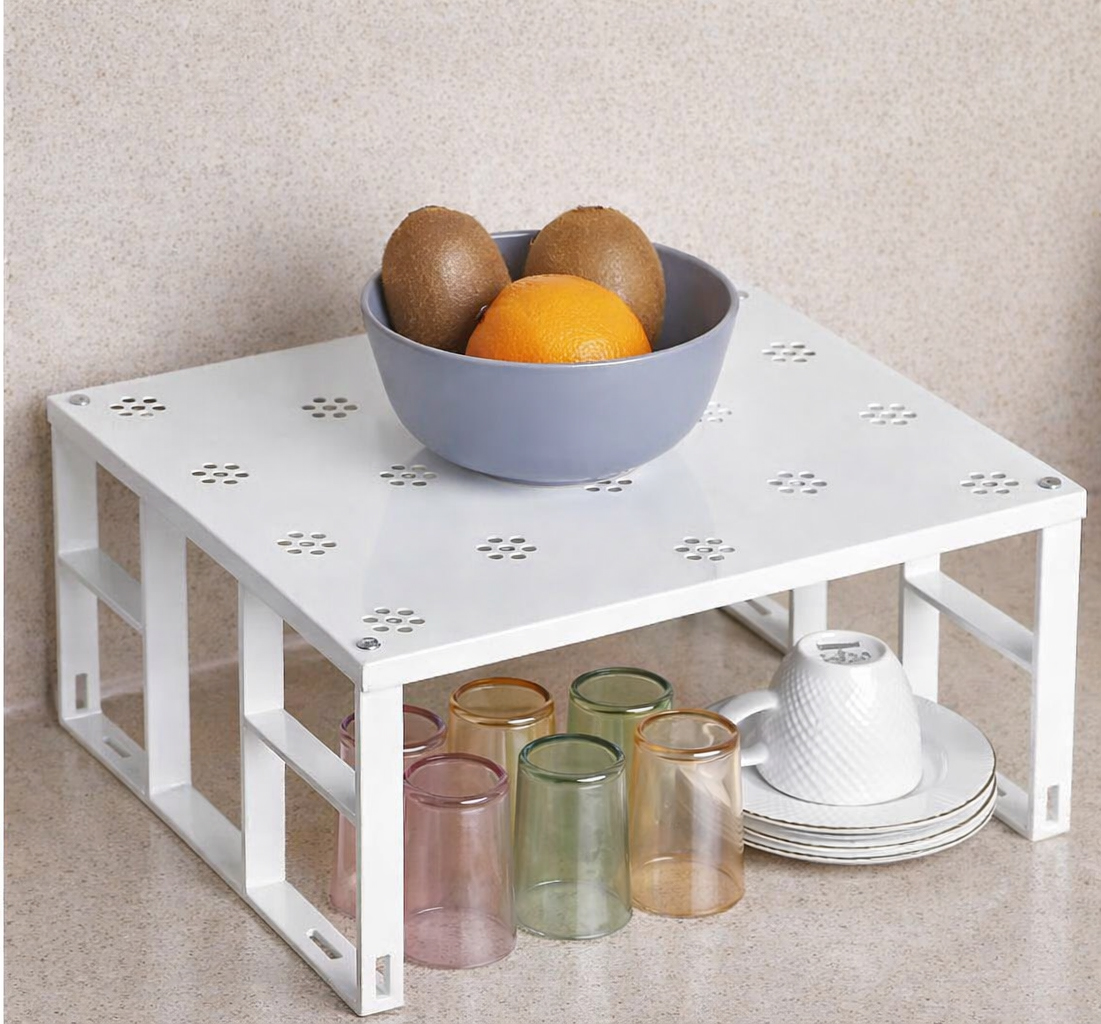 •Adds an extra shelf for better cabinet and countertop organization in your kitchen