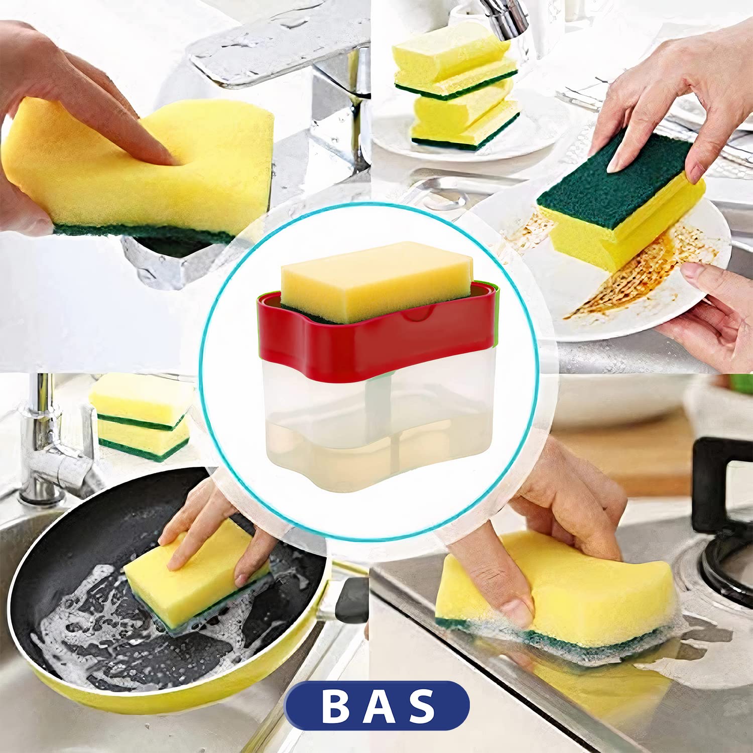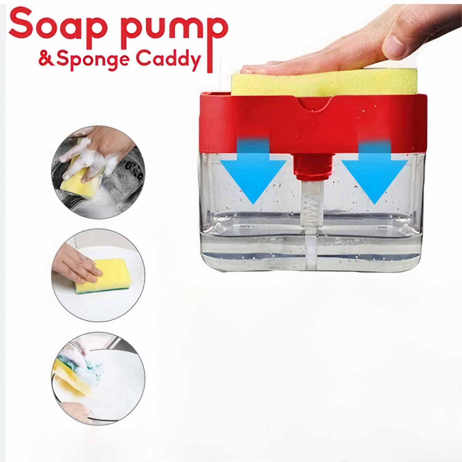 •All-in-one soap dispenser with sponge holder