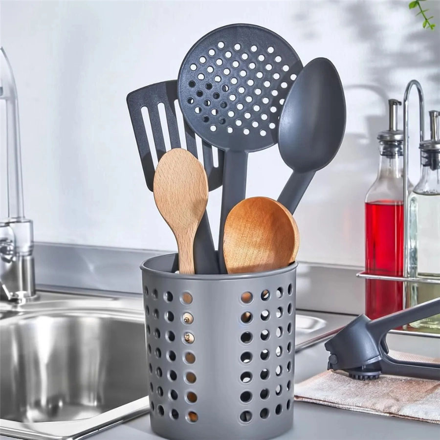 UTENSIL HOLDER PLASTIC – ROUND WITH DRAIN HOLES