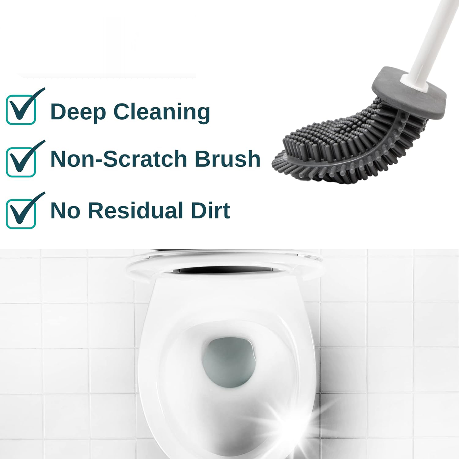 •Flexible Silicone Bristles: Easily cleans under the rim and hard-to-reach areas