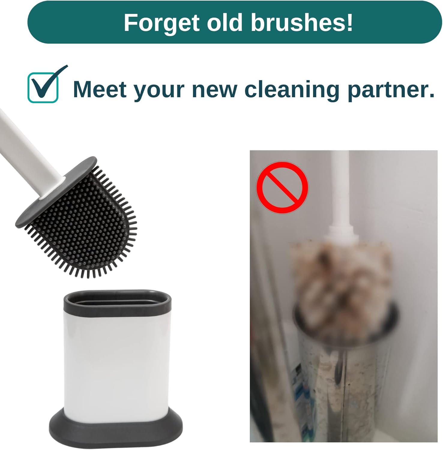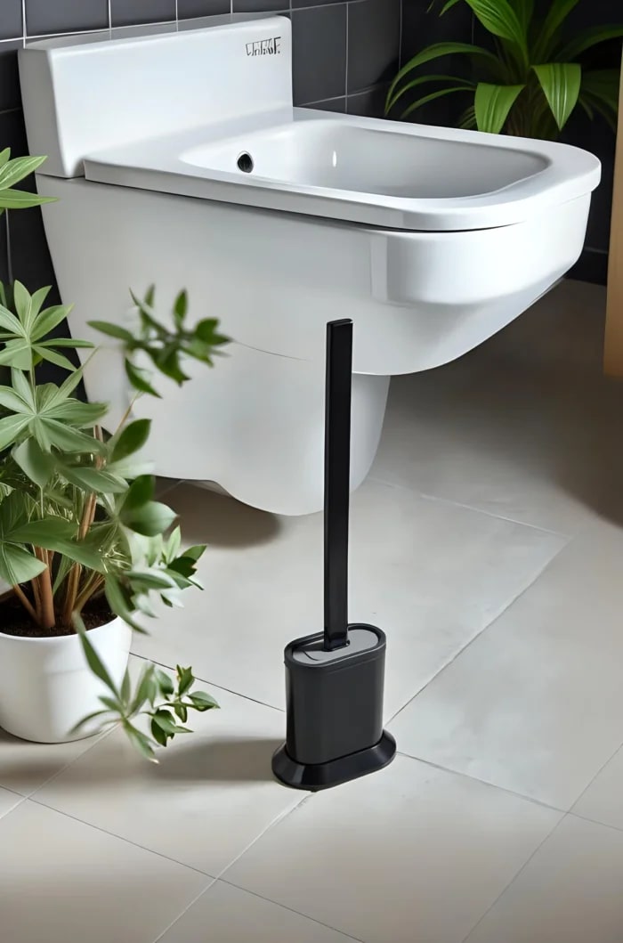 SLIM SILICONE TOILET BRUSH WITH HOLDER FLEXIBLE QUICK DRY DESIGN