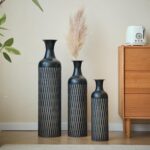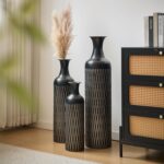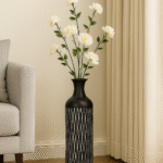 A timeless statement of elegance and artistry, this decorative metal floor vase brings refined Art Deco charm to your living space. Designed with a striking black base and luxurious silver fan-pattern detailing, its tall cylindrical form adds height, balance, and sophistication to any room. Perfect as a standalone accent or styled with artificial florals, this piece enhances modern and classic interiors alike. Shop Now from Homedash in Lebanon.