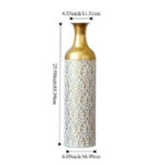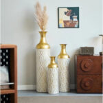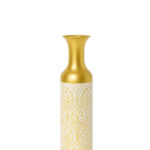 DECORATIVE MEDIUM METAL FLOOR VASE WHITE AND GOLD ART DECO CYLINDRICAL