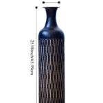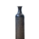 •Elegant cylindrical floor vase with Art Deco fan-inspired pattern with metal base enhanced with sophisticated silver accents and trim