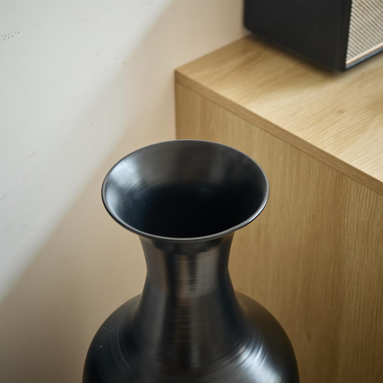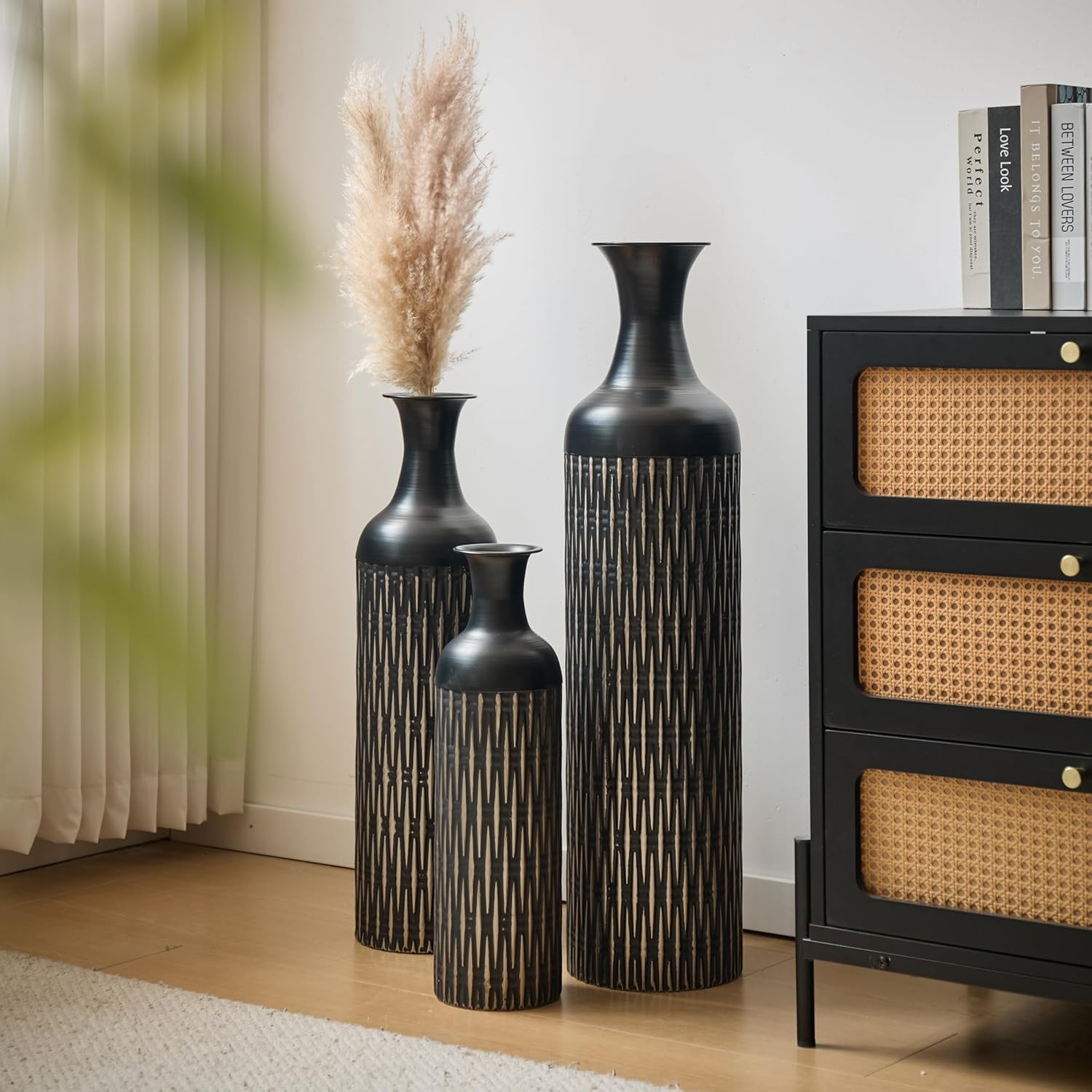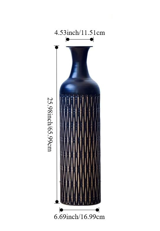 DECORATIVE MEDIUM METAL FLOOR VASE BLACK AND SILVER ART DECO CYLINDRICAL