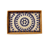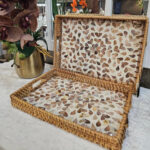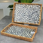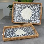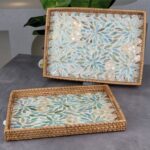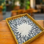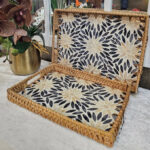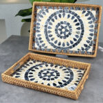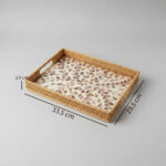 RECTANGULAR RATTAN PEARL INLAY SERVING TRAY WITH WOODEN BASE – BOHO DISPLAY TRAY 33 * 23 CM