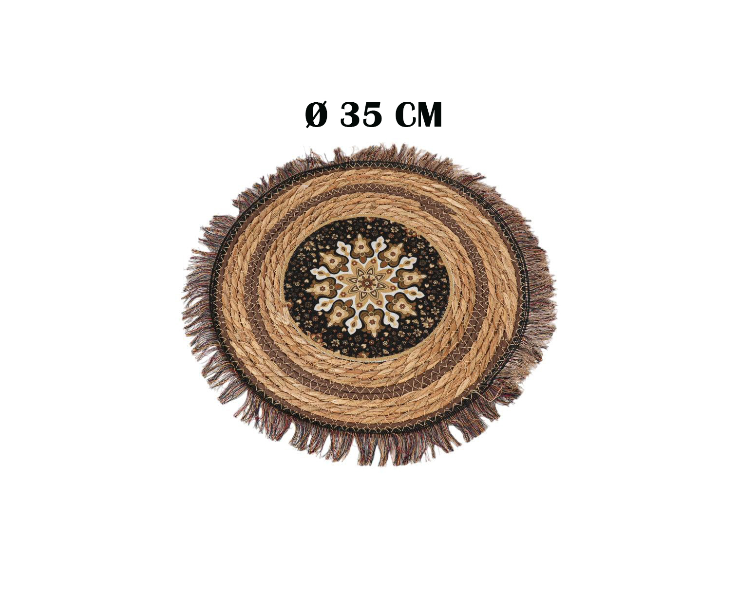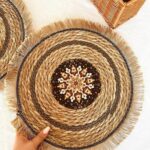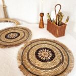 WOVEN PLACEMATS ROUND WITH HOT PAD – NATURAL WATER HYACINTH BOHO RATTAN TABLE MAT