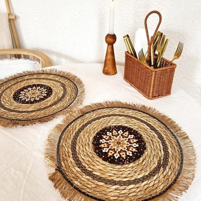 Be the first to review “WOVEN PLACEMATS ROUND WITH HOT PAD – NATURAL WATER HYACINTH BOHO RATTAN TABLE MAT” Cancel reply