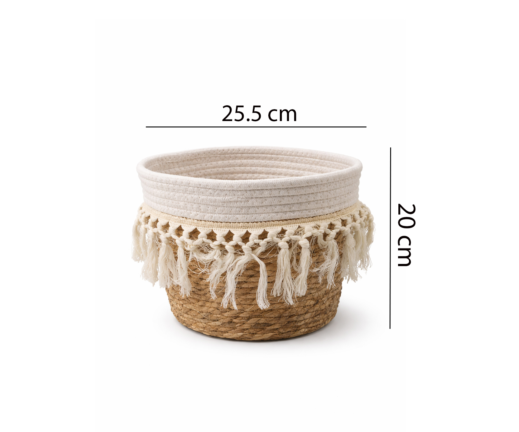 •Made from natural seagrass fiber with decorative beige cotton rope accents