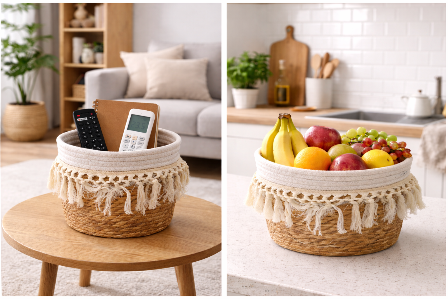 DECORATIVE BASKET WOVEN STORAGE – NATURAL SEAGRASS BASKET