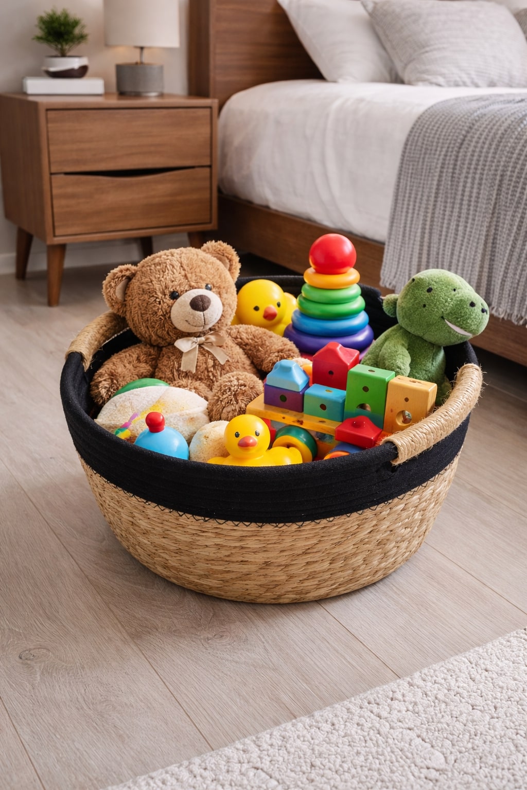 NATURAL LARGE WOVEN STORAGE BASKET WITH HANDLES FOR TOYS, LAUNDRY & PLANTS