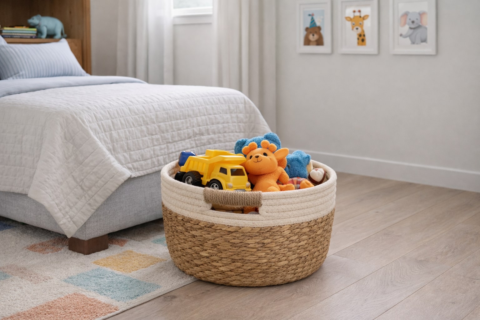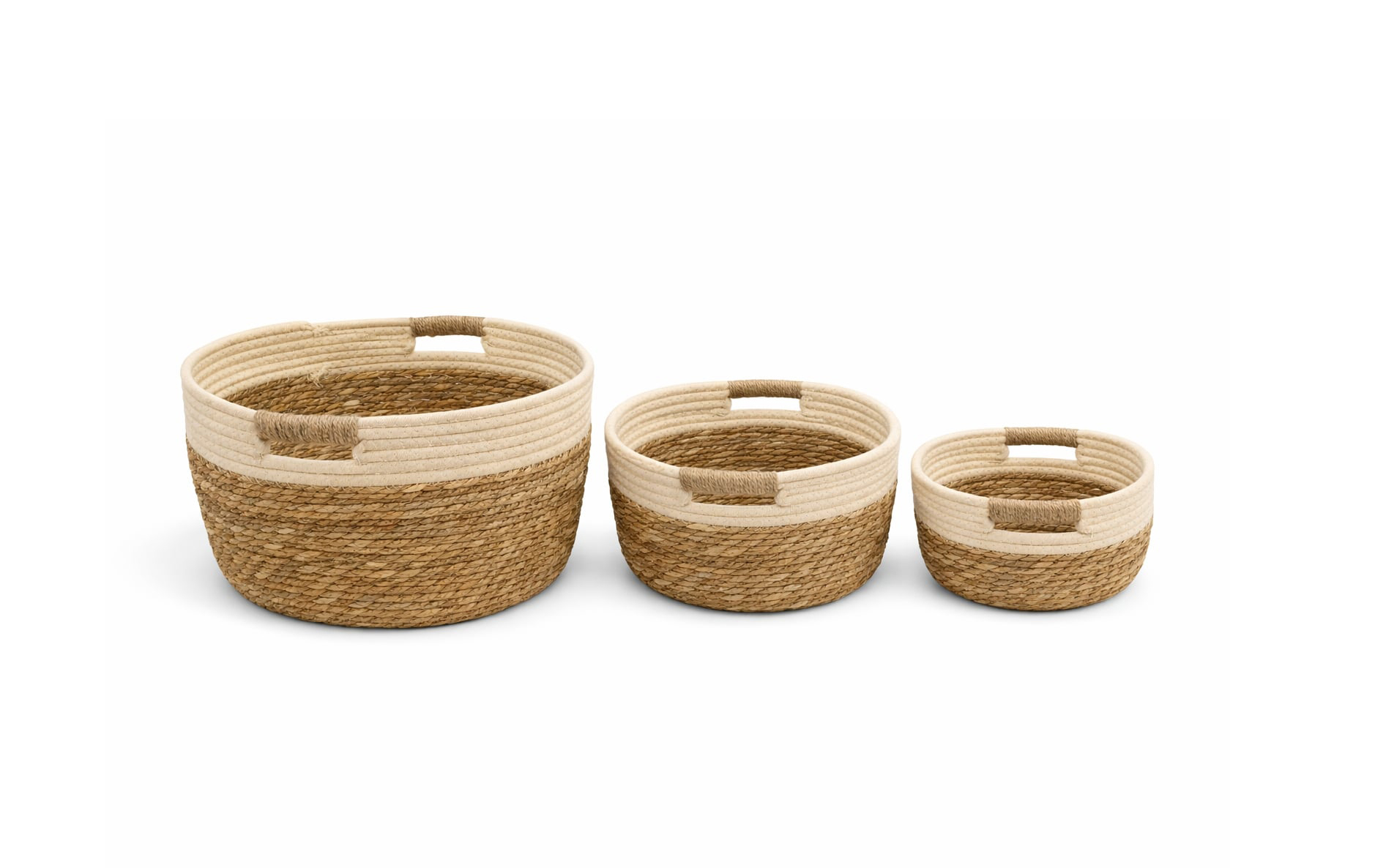 BEIGE MEDIUM NATURAL WOVEN STORAGE BASKET WITH HANDLES FOR TOYS, LAUNDRY & SMALL PLANTS
