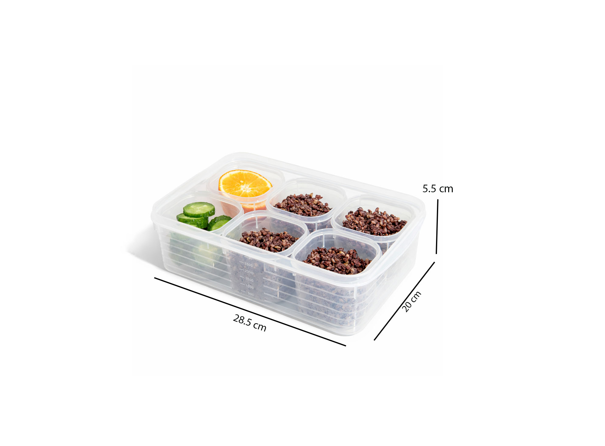 •Large Container Size: 28.5 × 20 × 5.5 cm – Capacity: 2.3 L