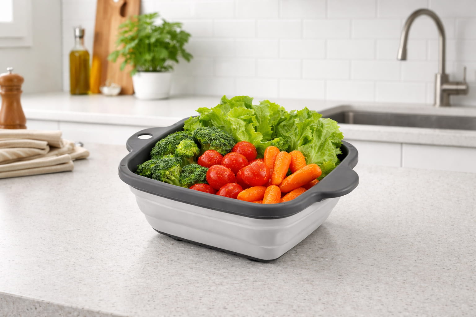 Upgrade your kitchen with smart space-saving design! This circular accordion strainer is the perfect blend of functionality and convenience, designed to make washing vegetables, fruits, and draining pasta effortless. Its collapsible silicone body folds flat for easy storage, making it ideal for compact kitchens, RVs, or camping trips. Built with a sturdy plastic rim and base, it ensures durability while maintaining flexibility. Made from BPA-free, food-grade materials, it is safe, easy to clean, and dishwasher friendly. Enjoy everyday practicality with a modern touch—shop now from Homedash in lebanon.